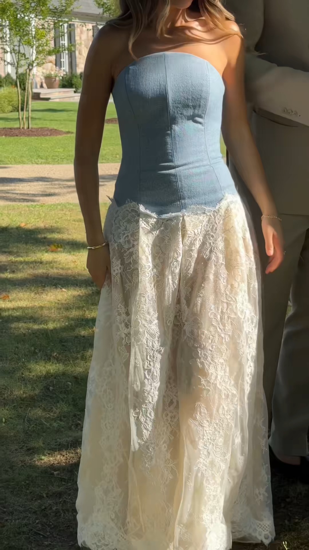 Denim patchwork lace dress