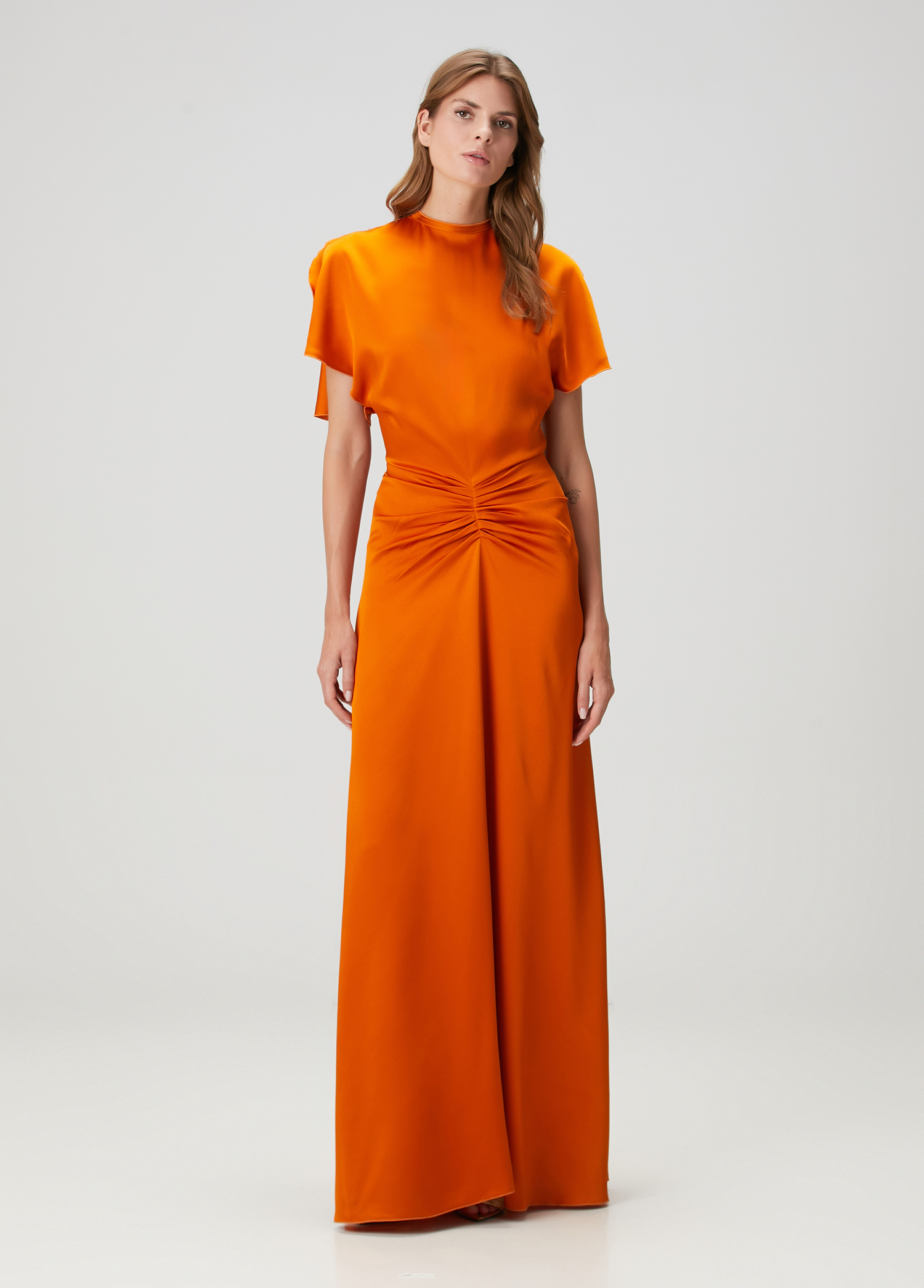 Draped Short Sleeve Maxi Dress - Sunset Orange