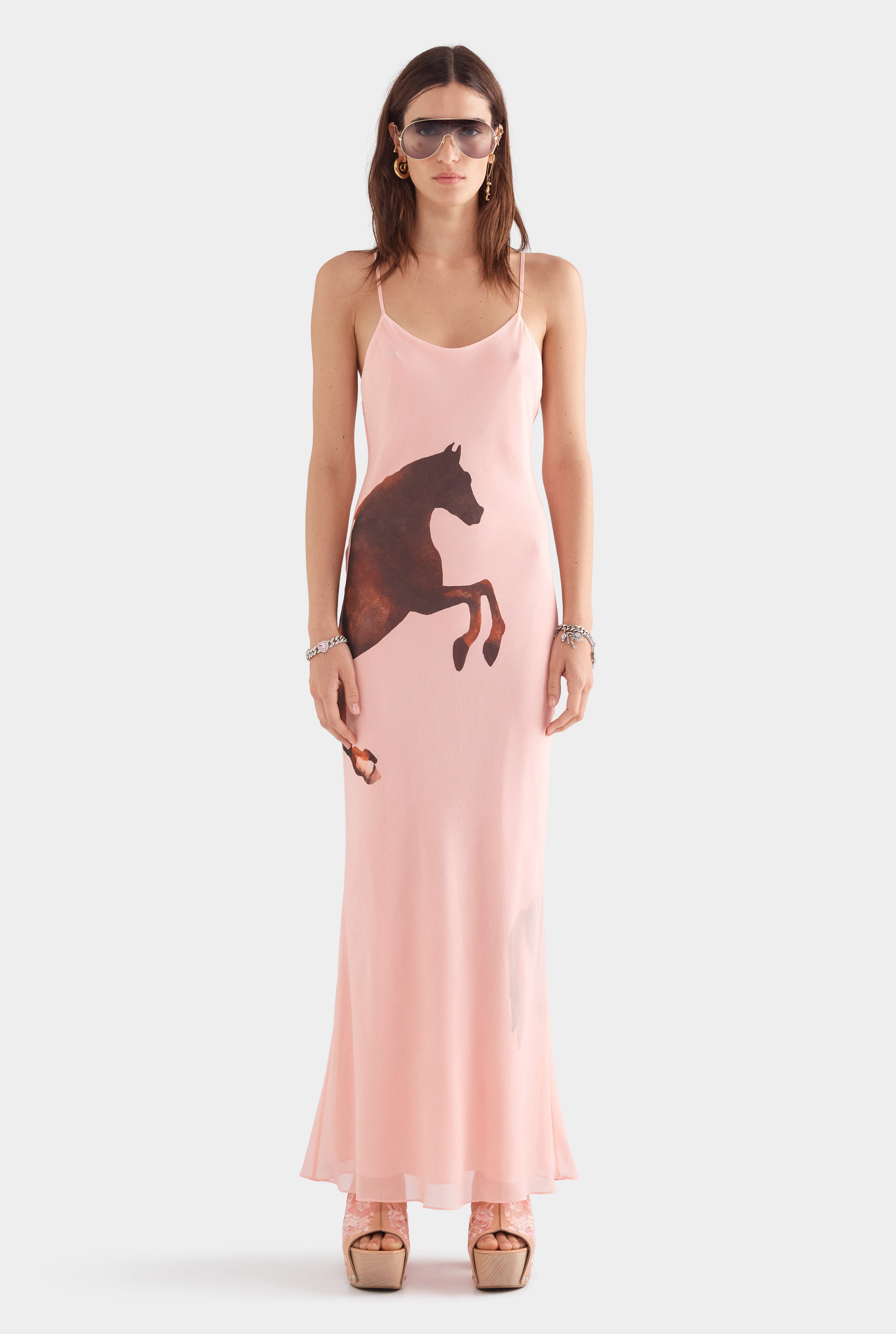 Pink Horse Print Slip Dress