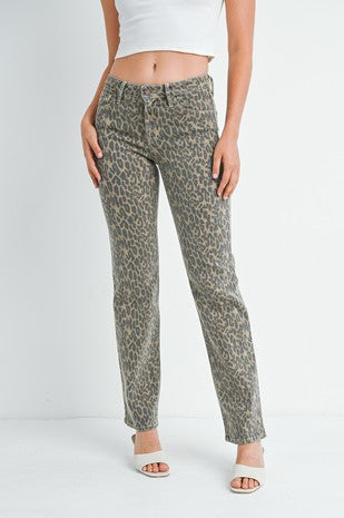 Unleash your wild side with our Leopard Straight Leg Denim! High-rise design and clean straight leg for a flattering fit. Not your average jeans, these feature a fun leopard print wash to spice up your wardrobe. Go ahead, be a little daring!