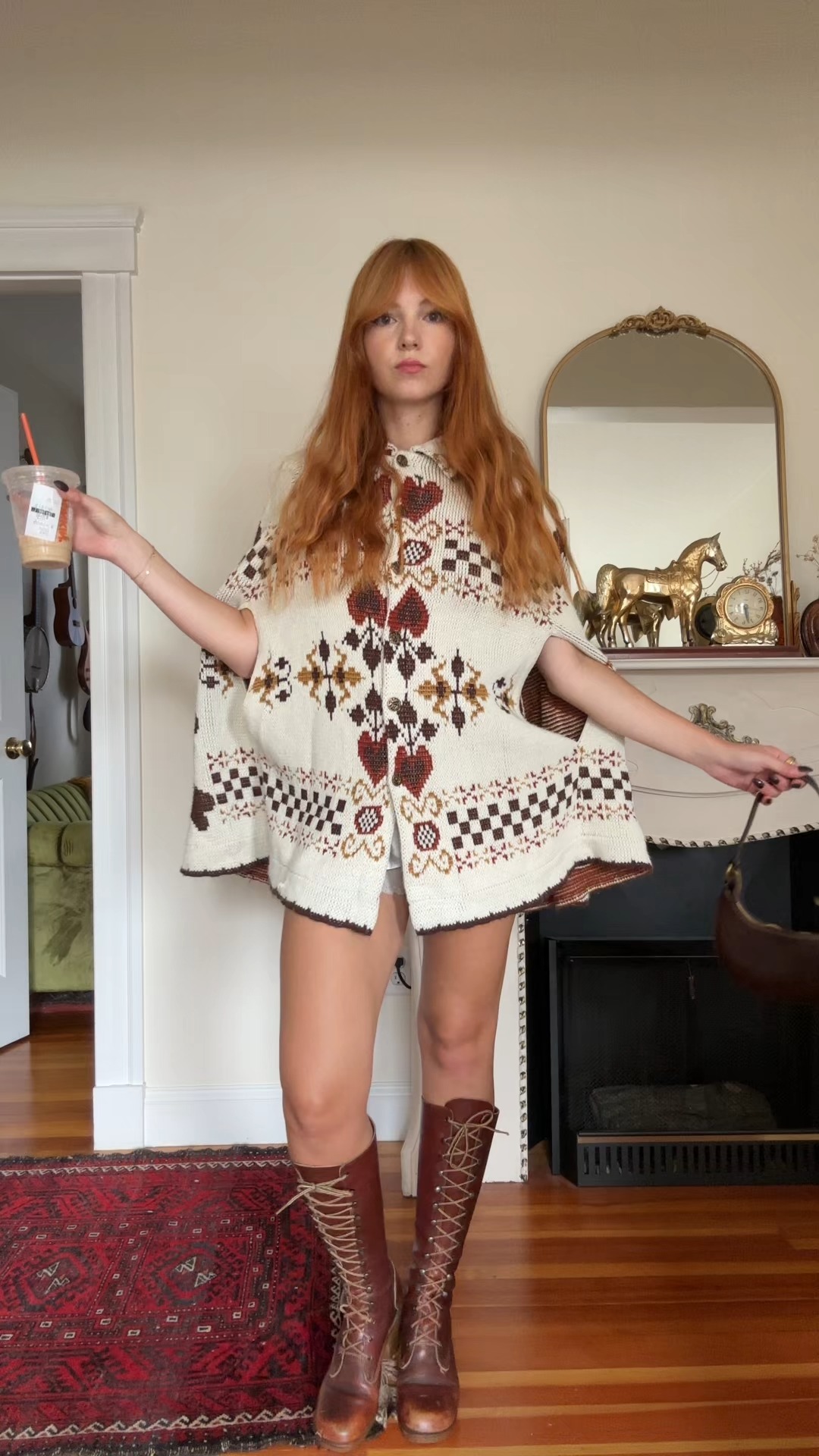 Retro Plaid Heart Knit Cape Jacket