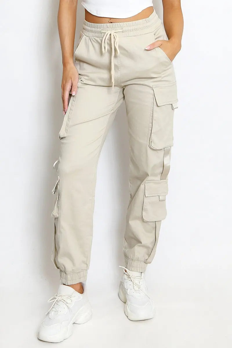 Versatile High Waist Multi- Pocket Elastic Cargo Pants