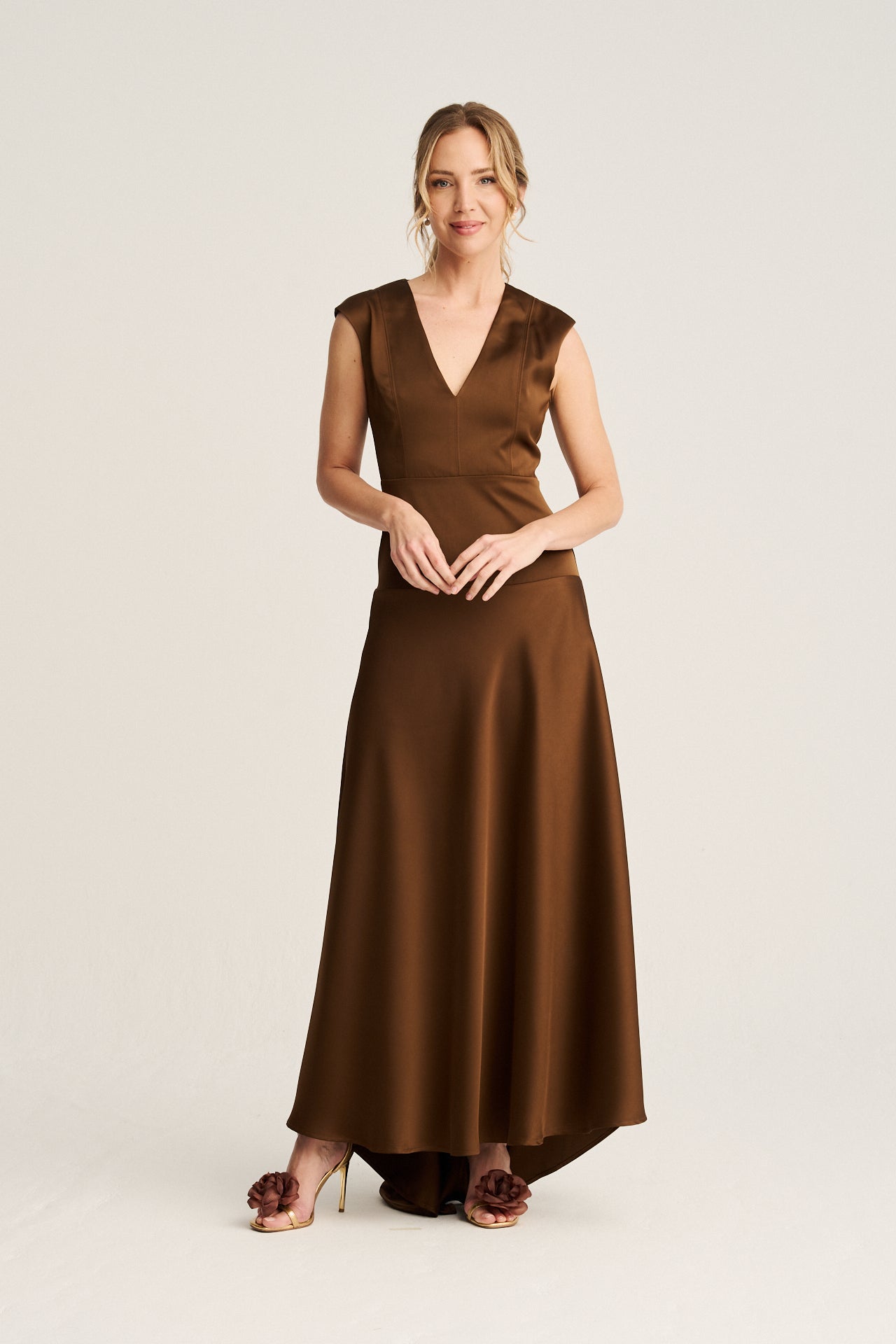 Brown Off-Shoulder Maxi Dress