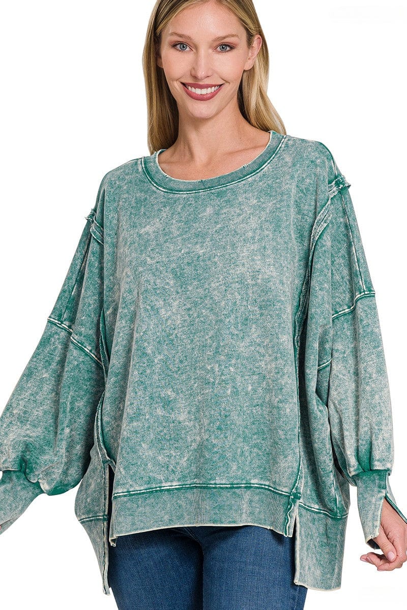 Zenana Acid Washed French Terry Exposed Seam Sweatshirt