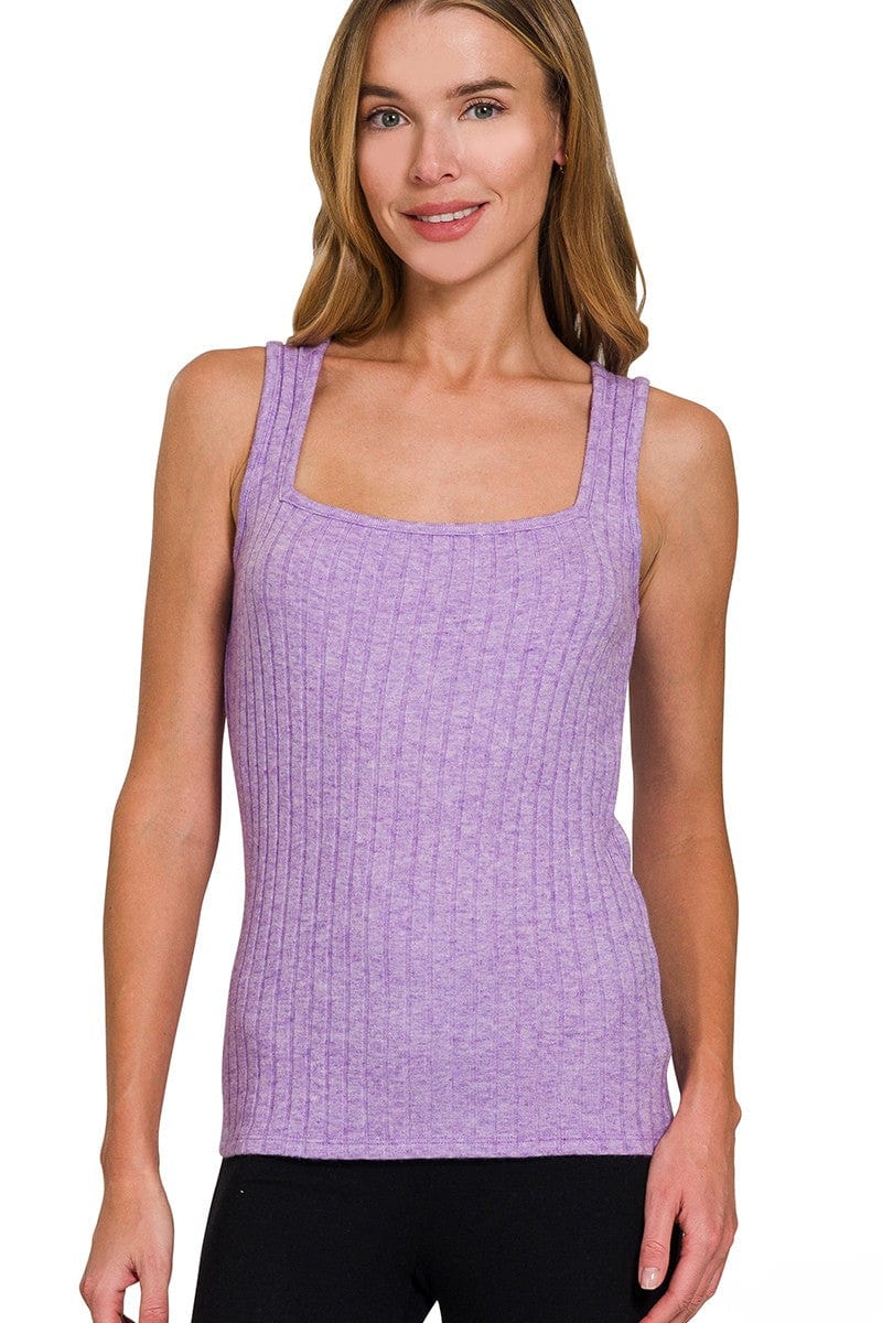 Zenana Ribbed Square Neck Sleeveless Tank Top